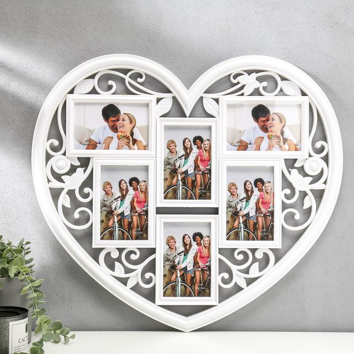 Фоторамка пластик на 6 фото 10х15 см "Сердце ажурное" белая 56х51 см 896397