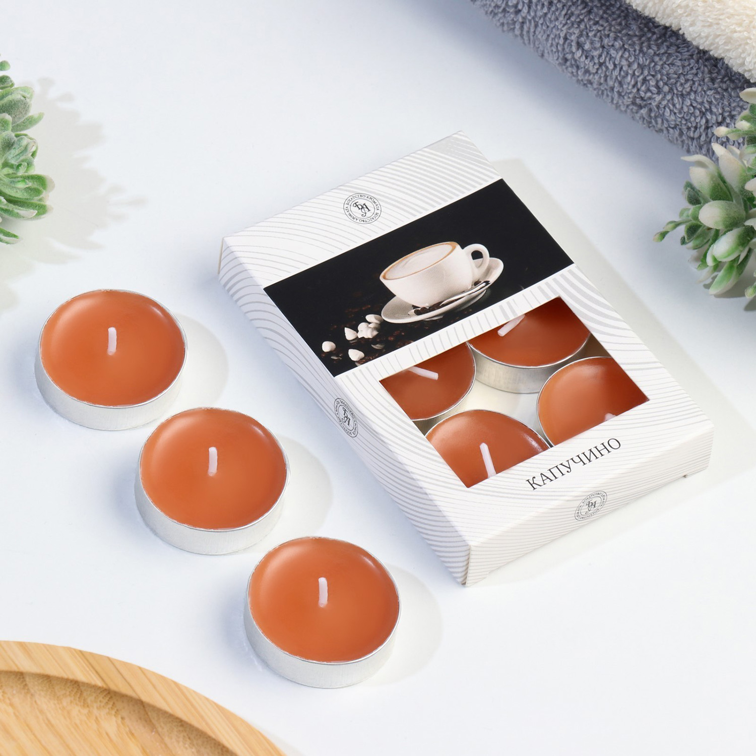 Набор чайных свечей ароматизированных "Капучино" в подарочной коробке, 6 шт 4820499