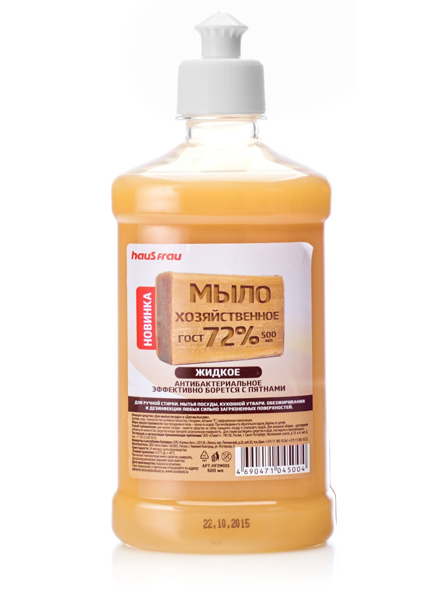 Мыло хозяйственное 72% жидкое Haus Frau эффективно борется с пятнами. Подходит для ручной стирки, для мытья посуды, для обезжиривания. Чистит любые сильнозагрязненные поверхности.