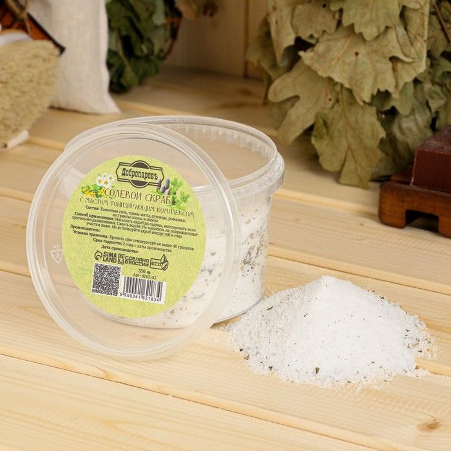 яяяСолевой скраб "Добропаровъ" из белой каменной соли с маслом пихты и травами, 550 гр 4162183