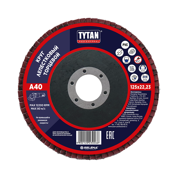 Круг шлифовальный лепестковый торцевой 125*22,23мм зерно A 40 оксид алюминия TYTAN *10/200