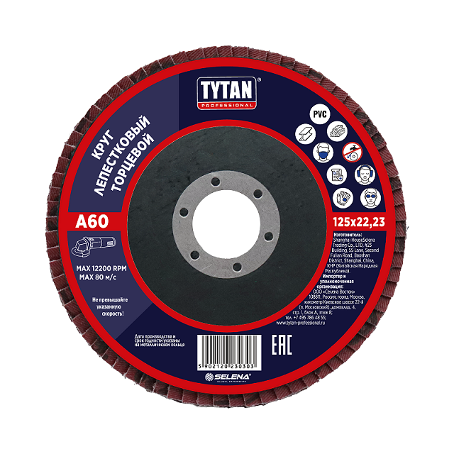 Круг шлифовальный лепестковый торцевой 125*22,23мм A 60 оксид алюминия TYTAN *10/200