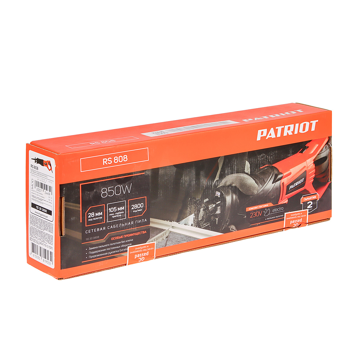 Пила сабельная 850Вт 2800ход/мин глуб.пропил. дер/мет 105/6мм ход28мм плав.пуск RS808 PATRIOT *1/4