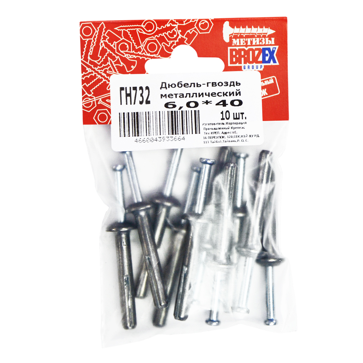 Дюбель-гвоздь 6,0*40 металлический BROZEX пакет (10шт) *10/100