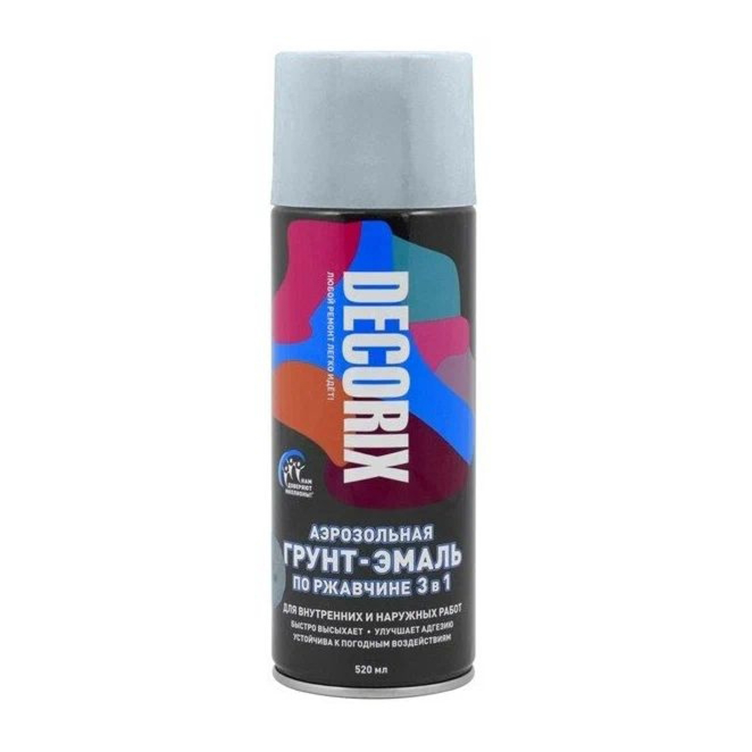Грунт-аэрозоль по ржавчине 3 в1 серебристый глянцевый 520/200 мл DECORIX (А25) *1/12