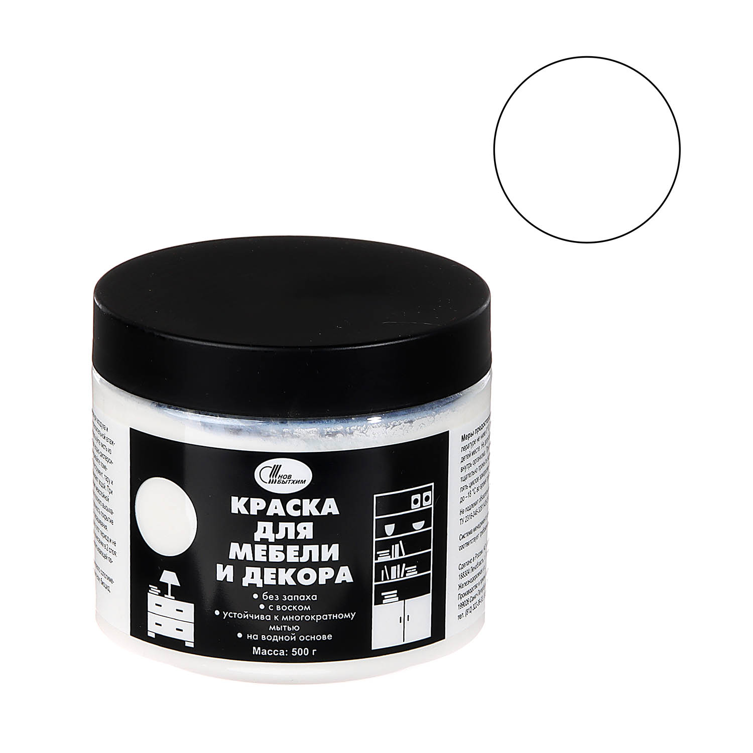 Краска акриловая для мебели и декора Белый 0,5 кг Новбытхим *1/6