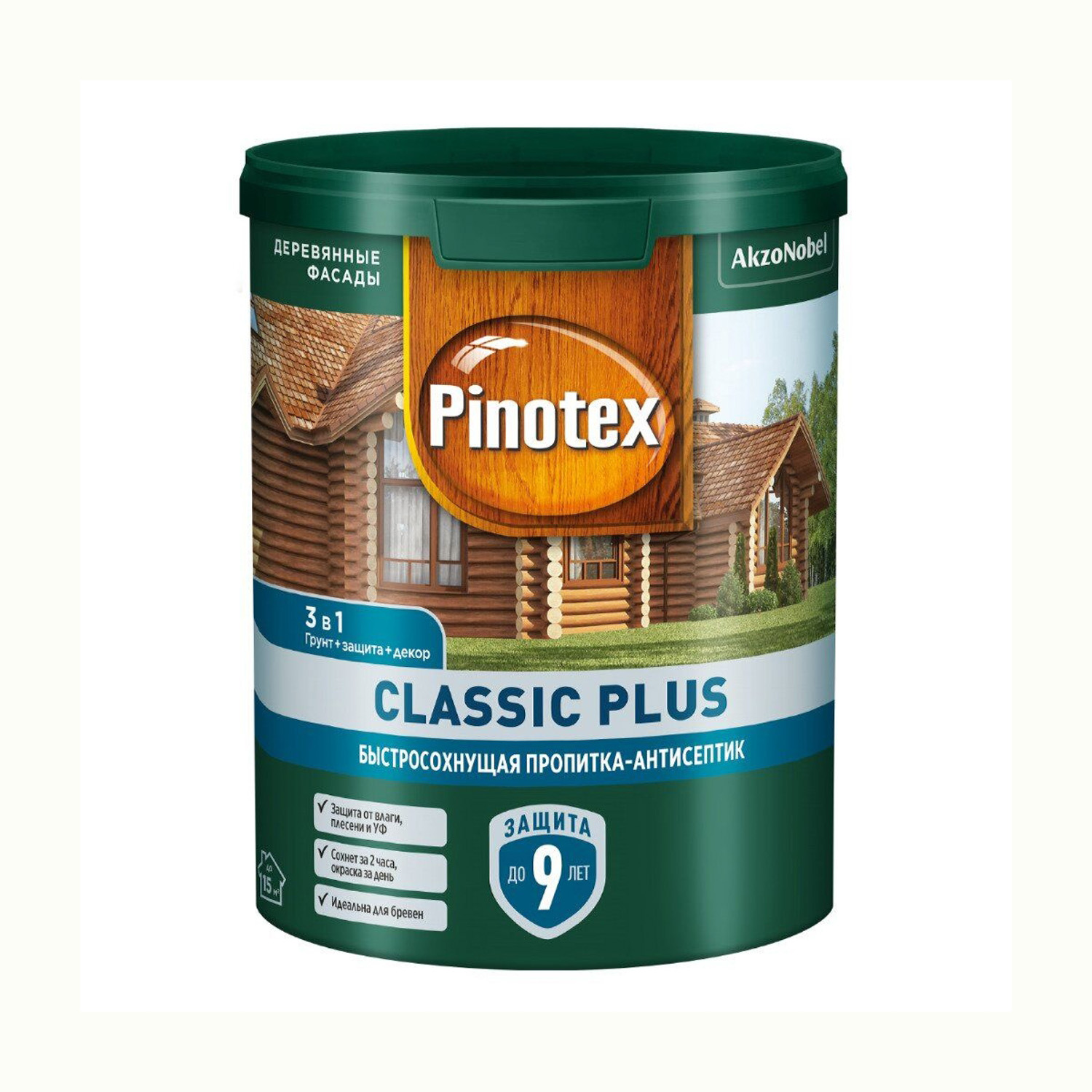 штПропитка-антисептик для древесины Pinotex Classic Plus база под колеровку 0.9 л — это быстросохнущий состав на гибридной основе сроком действия до 9 лет, оптимальный для бревенчатых фасадов и бань. Акрил-алкидное связующее образует атмосферостойкое паропроницаемое покрытие, благодаря которому древесина «дышит». Пропитка имеет нейтральный запах, легко наносится и быстро сохнет.