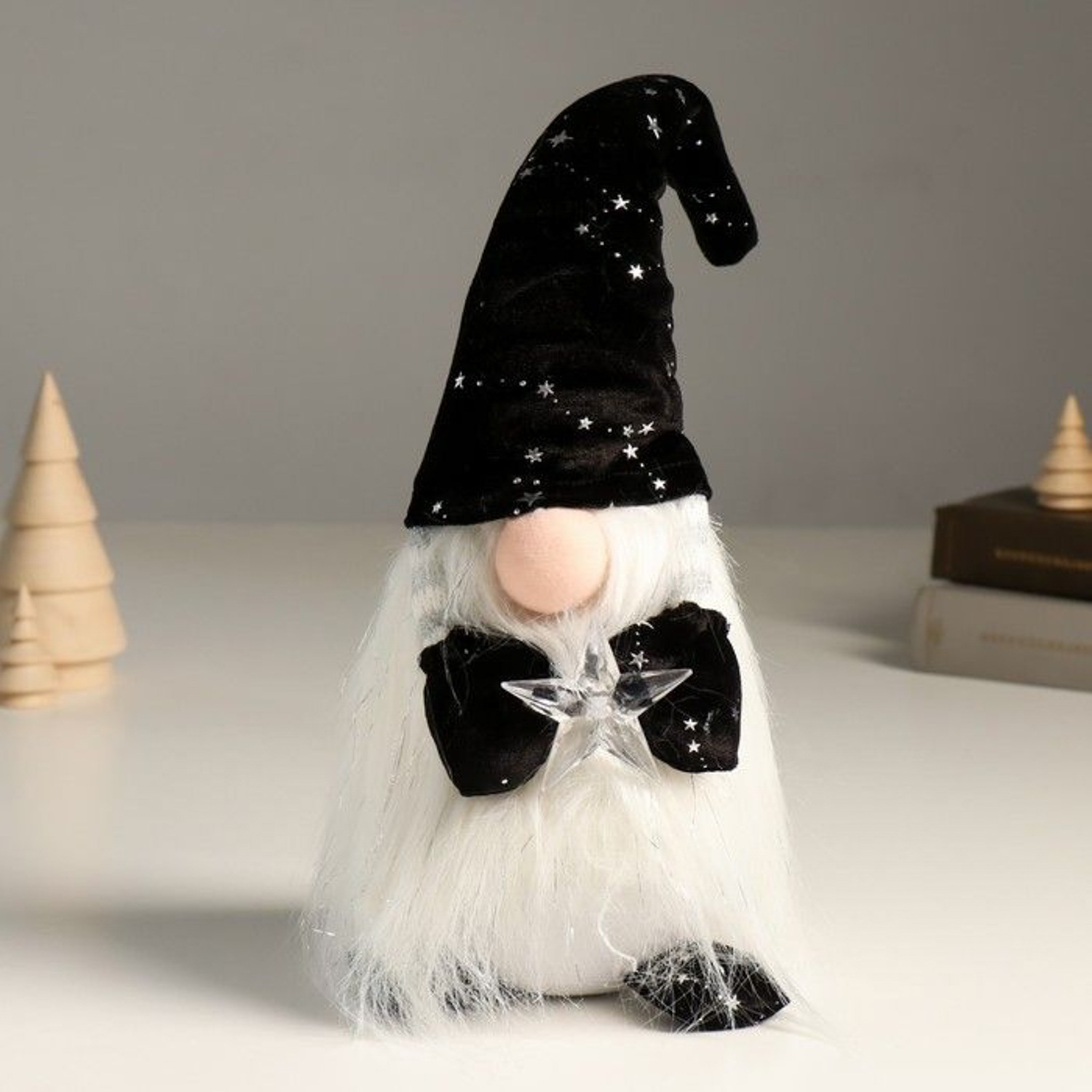 Кукла интерьерная "Гном в чёрном колпаке со звездами, со звёздочкой в руках" 36 см 9488054