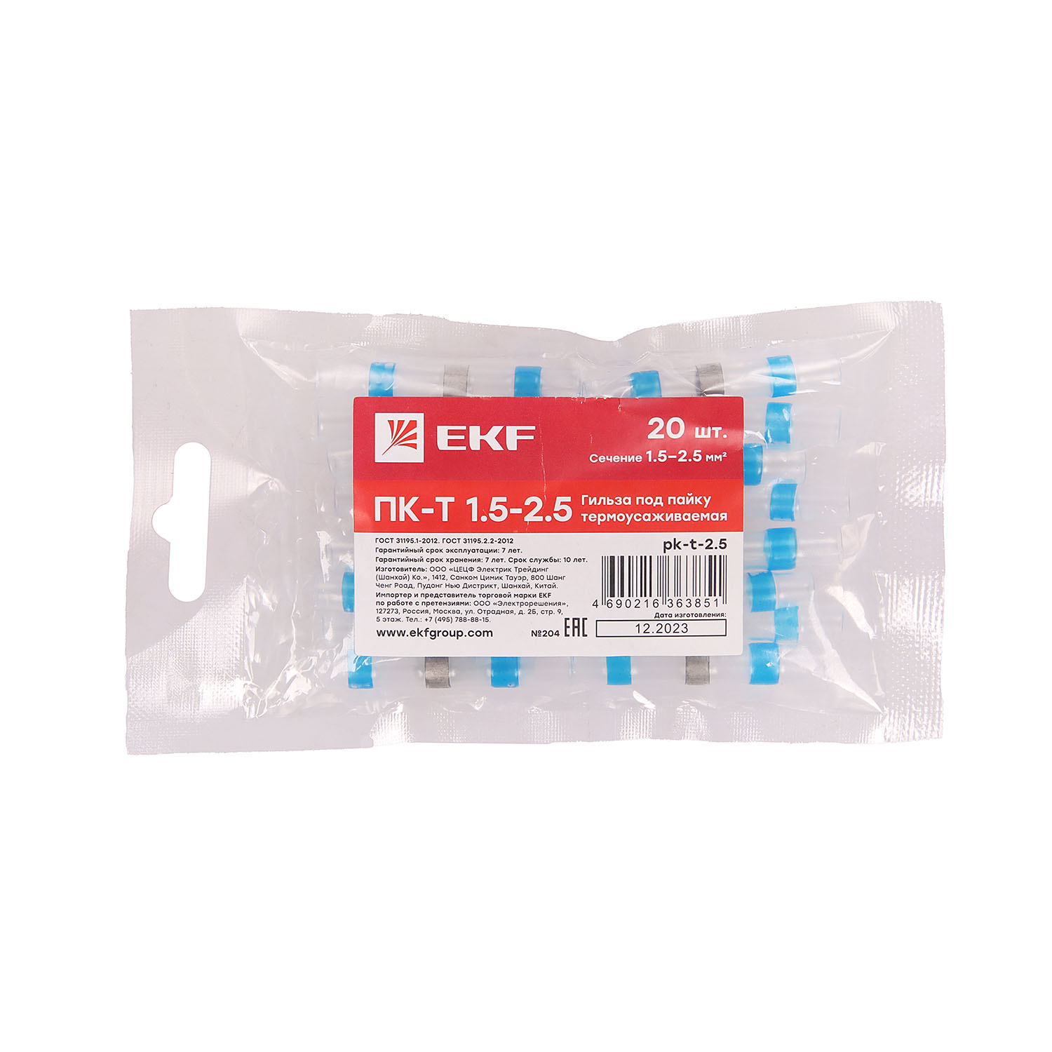 Гильза термоусаживаемая ПК-Т 1.5-2.5 под пайку упаковка 20шт EKF pk-t-2.5 *1