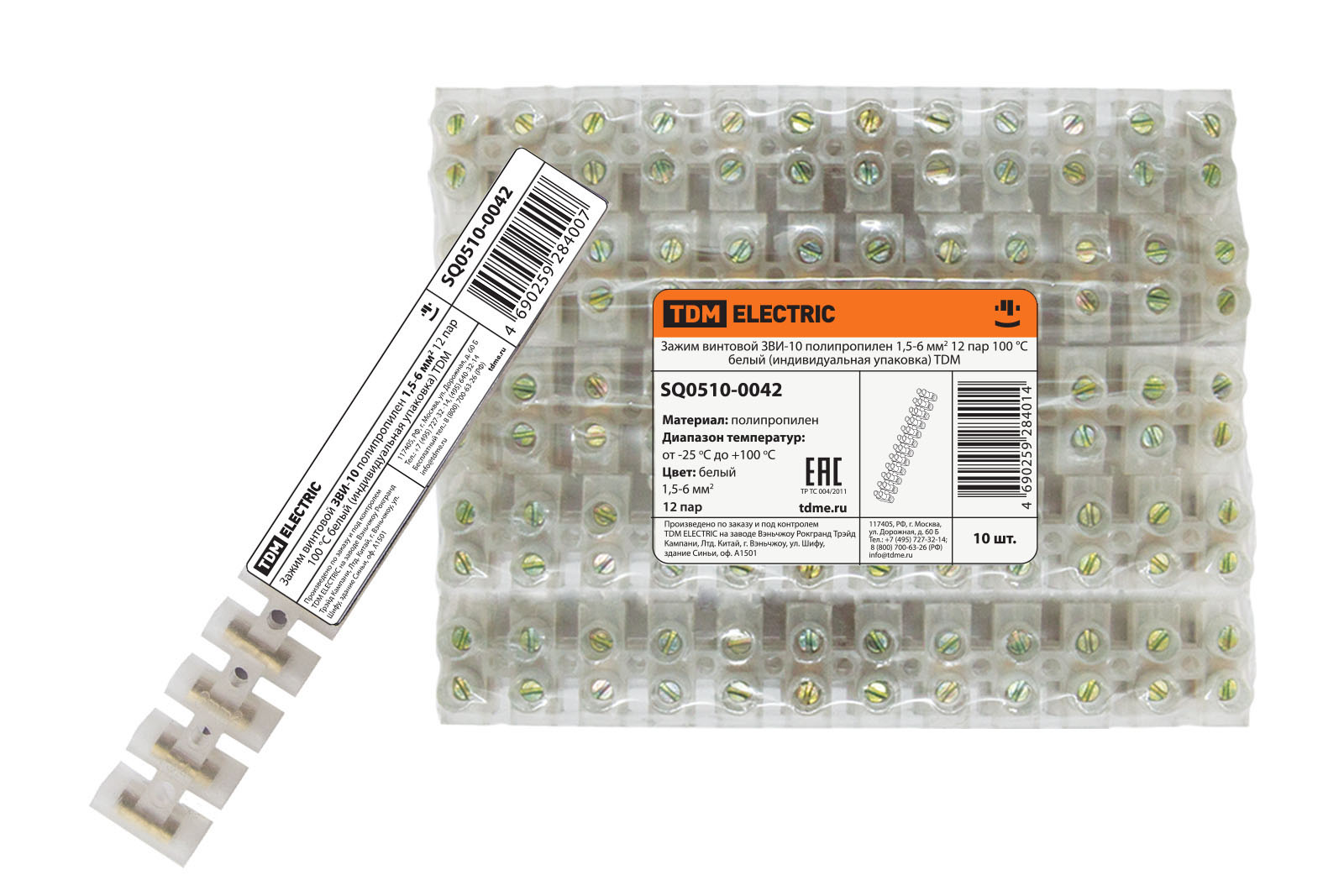 Колодка клемная ЗВИ-10 1,5-6мм2, )12пар) белый TDM SQ0510-0042 *1/10