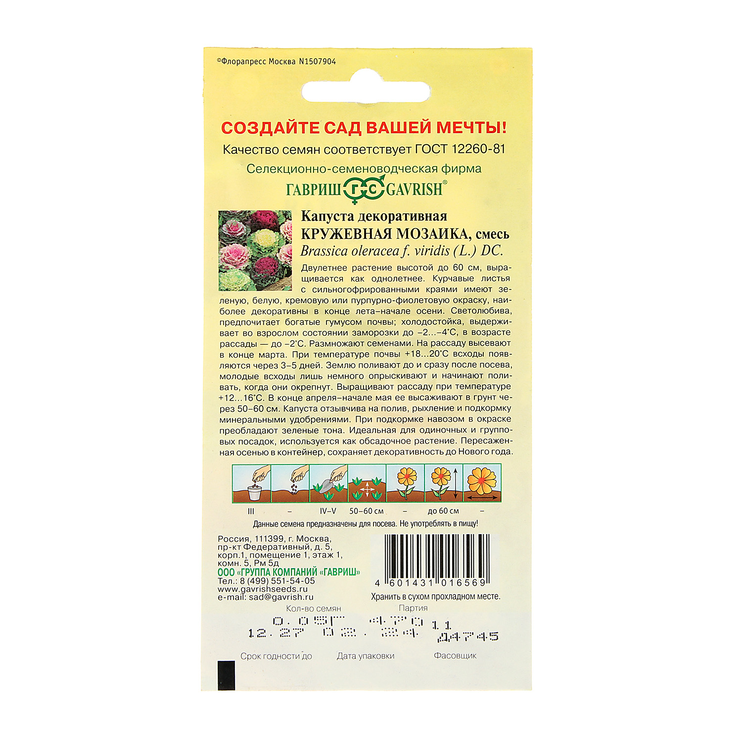 Семена Капуста декоративная Кружевная мозаика 0,1гр Гавриш *10/200