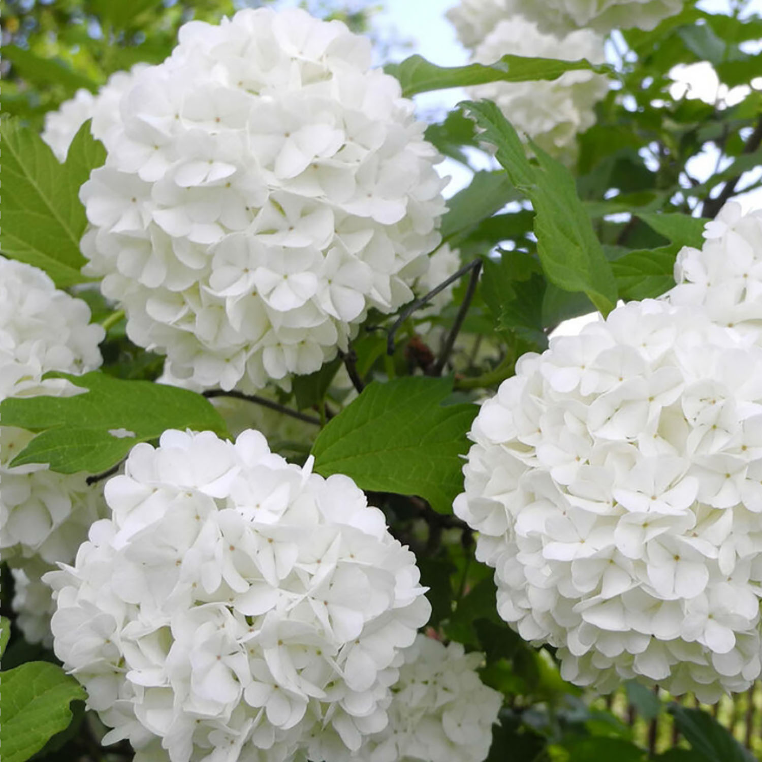 Калина «Бульденеж» цветет в начале лета и у вас есть около месяца, чтобы наглядеться на ее прекрасные белые цветки, собранные в шарообразные соцветия диаметром от 7 до 15 сантиметров. В высоту кустарник может достигать 2-2.5 метров. Высаживать калину лучше в полутени, так как на солнце цветы и листья могут получить повреждения, а в тени – их станет гораздо меньше и они будут мельче. Кустарник любит влагу, но не застаивание воды, поэтому лучше заранее позаботиться о дренаже. Сажать ее лучше в рыхлую, питательную почву. При этом она очень неприхотлива и отлично приспосабливается к любому климату, поэтому вы смело можете сажать ее в любом месте, даже там, где бывают сильные холода и резкие перепады температуры.