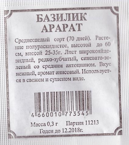 Семена Базилик Арарат овощной 0,2-0,3гр Аэлита БЕЛ *20/500