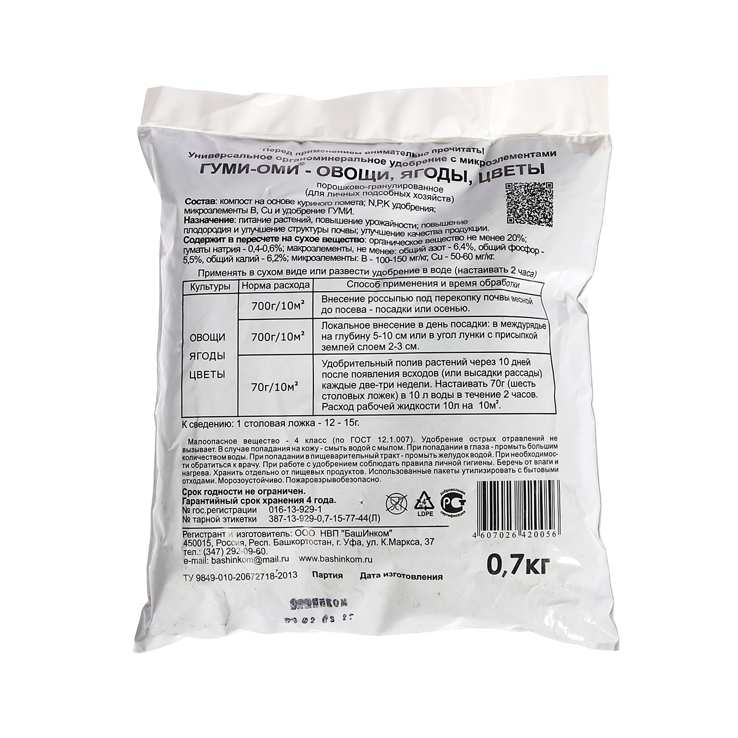 Удобрение Овощи 0,7кг Гуми-Оми (БашИнком) *20