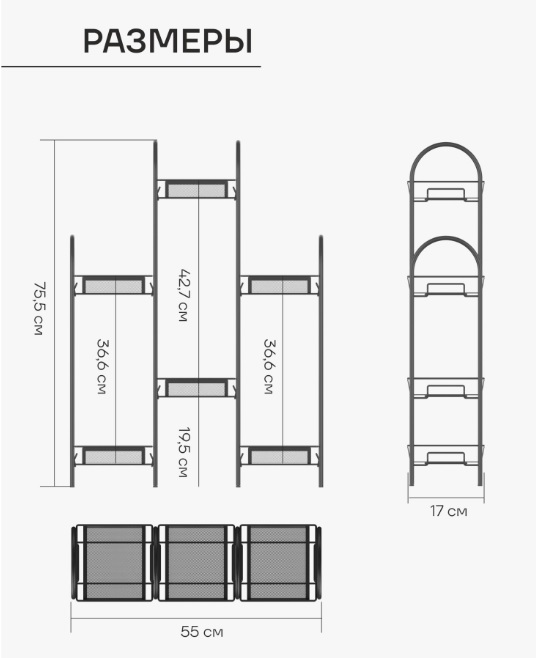 Этажерка для цвет.кашпо металл. "Лира36" 6-и местн.,ш.0,55м,в.0,74м,гл.0,17м Черн.ПДЦЛ36 Ч *1