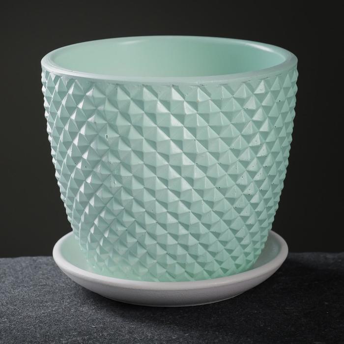 Кашпо бетон Бутон Грань 2,15л d верха 175мм h152мм с поддоном Зеленый №3 КБ-Б3-217-01 *8