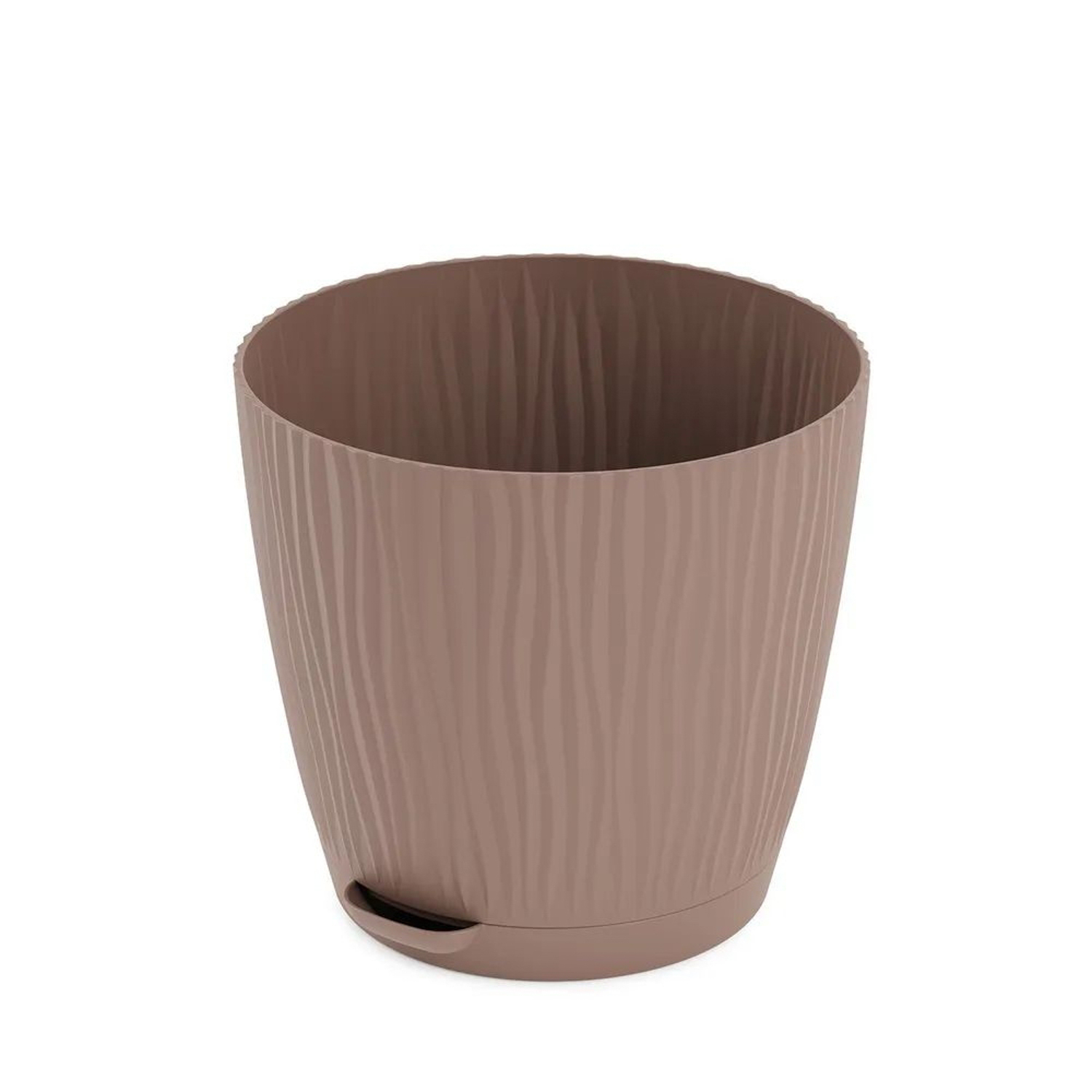Кашпо пластм. "Флис" 1,2л d верха 135мм h125мм с поддоном, прикорн.полив Какао М8438 *1/24