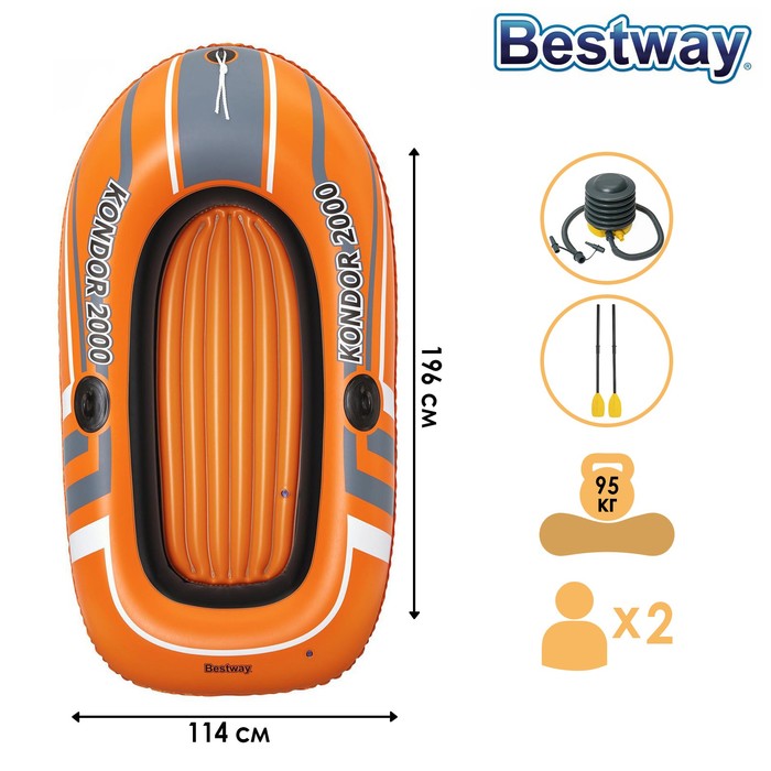 Лодка Kondor 2000 2-х местная 196 х114 см (весла 124 см, насос) до 95 кг, от 6 лет 61062 1228998