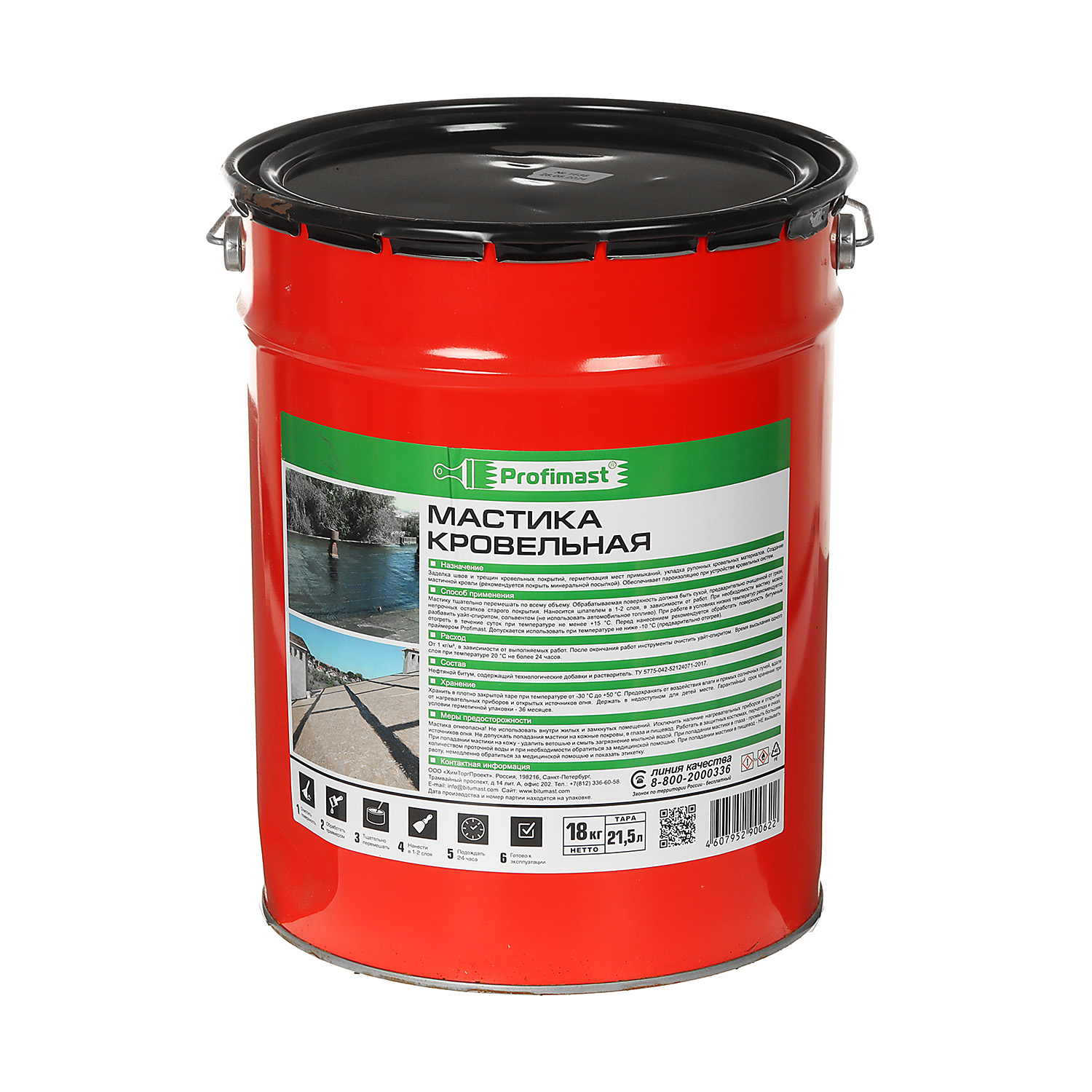 Мастика битумная кровельная Profimast 21.5 л — состав на основе высококачественного кровельного битума. Обладает густой консистенцией, не растекается в горизонтальных швах и трещинах. Содержит гербицидную добавку, препятствующую прорастанию сорняков, мхов и лишайников в кровельном полотне. Совместима с большинством битумных и битумно-полимерных материалов. Не содержит толуола и других токсичных растворителей.