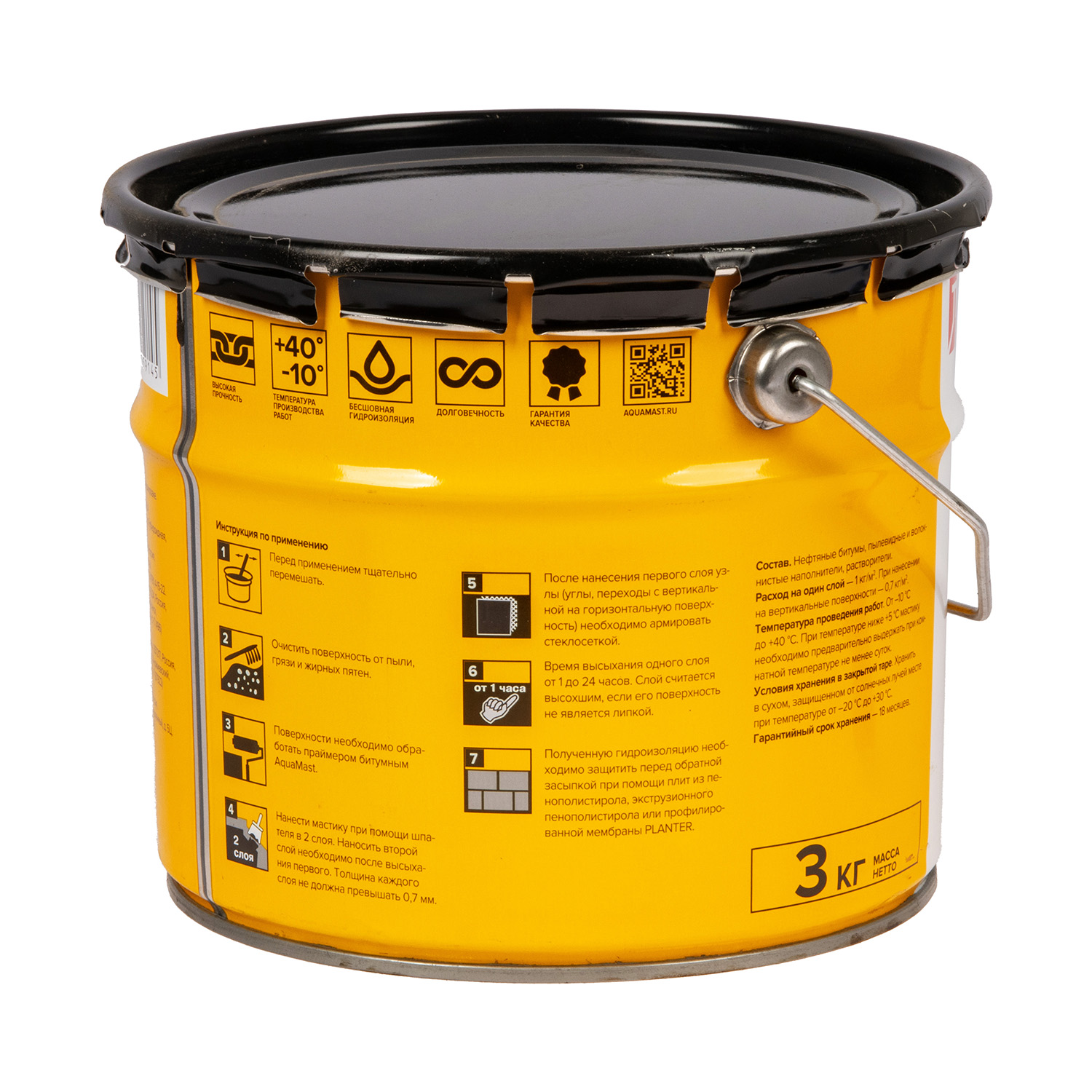 Мастика битумная 3 кг ТехноНиколь АquaMast, гидроизоляционная