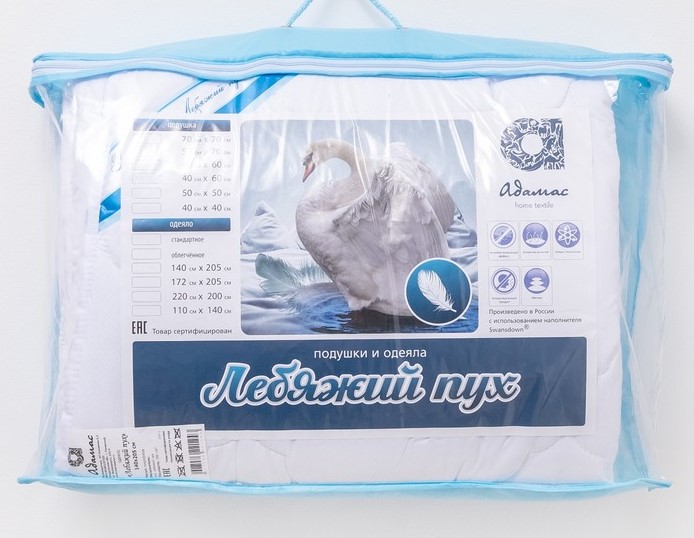 Одеяло Лебяжий пух 172х205см стандарт, чехол микрофибра, сумка ОЛППэ90С-172-1 Адамас *1/10 *