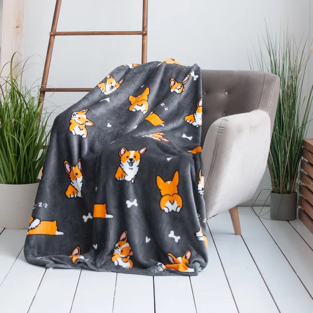 Плед детский 150*200см микрофибра Festival Корги серый Casa Conforte *1