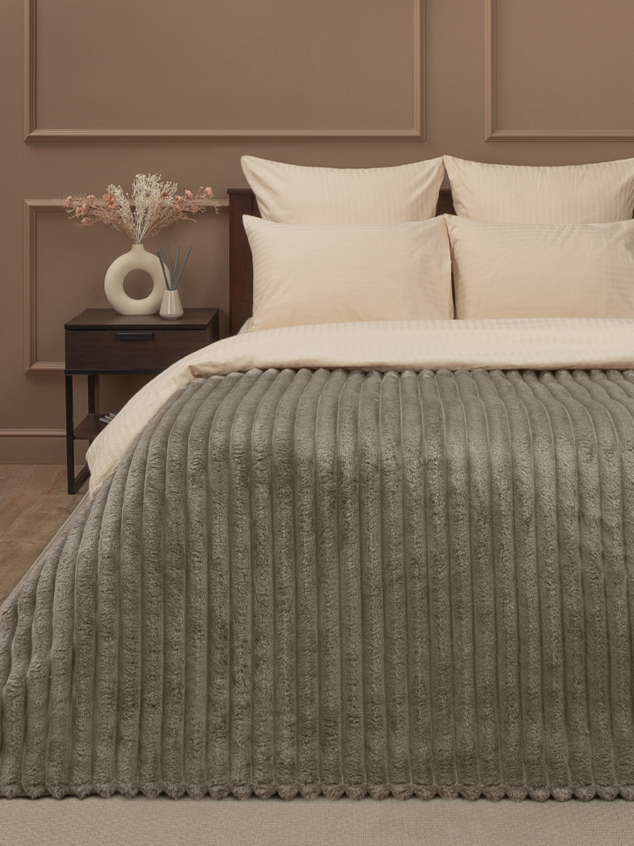 Плед 200*220см фланель крупный рубчик коричневый TF FNJR BR2 011/2022 NC Absolute *1 акция