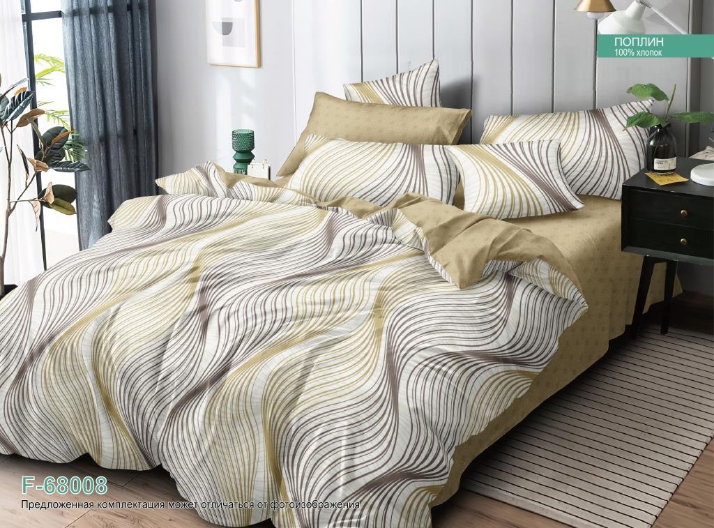 Постельное белье евро поплин на резинке Орхидея F-68008, наволочки 70*70 - 2шт *1/4