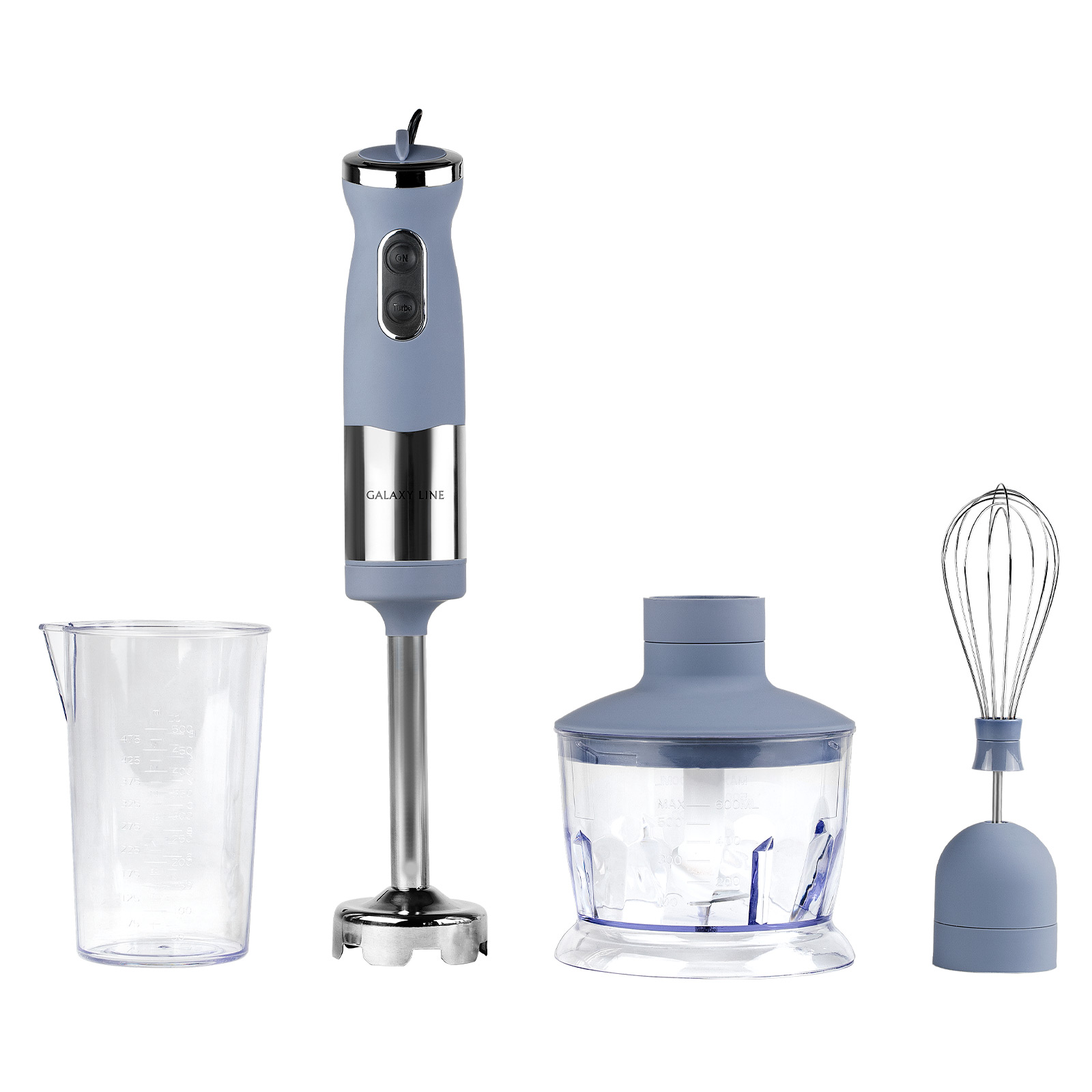 Блендерный набор GALAXY LINE GL2121 предназначен для взбивания, измельчения и сме­шивания ингредиентов. Набор включает несколько насадок и предметов: измельчитель (чоппер), погружной блендер, венчик, мерный стакан. Насадка-измельчитель с пластиковой чашей объемом 0.5 литра позволит Вам быстро измельчить овощи для салата или супа, превратить мясо или рыбу в фарш, приготовить паштет и многое другое. Погружной блендер из высококачественной нержавеющей стали имеет четырехлопастный нож, который долго держит заточку и быстро измельчает даже горячие и твердые продукты.