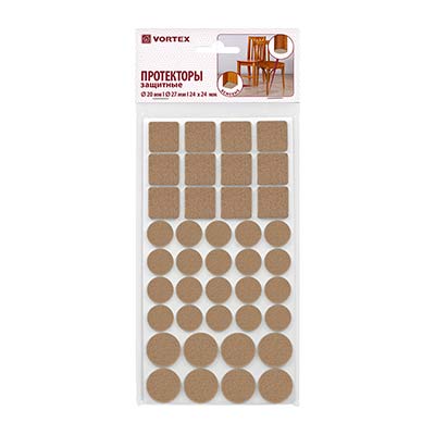 Протекторы защитные из фетра d20мм, d27мм, d24*24мм "VORTEX" бежевые 24383*1/30