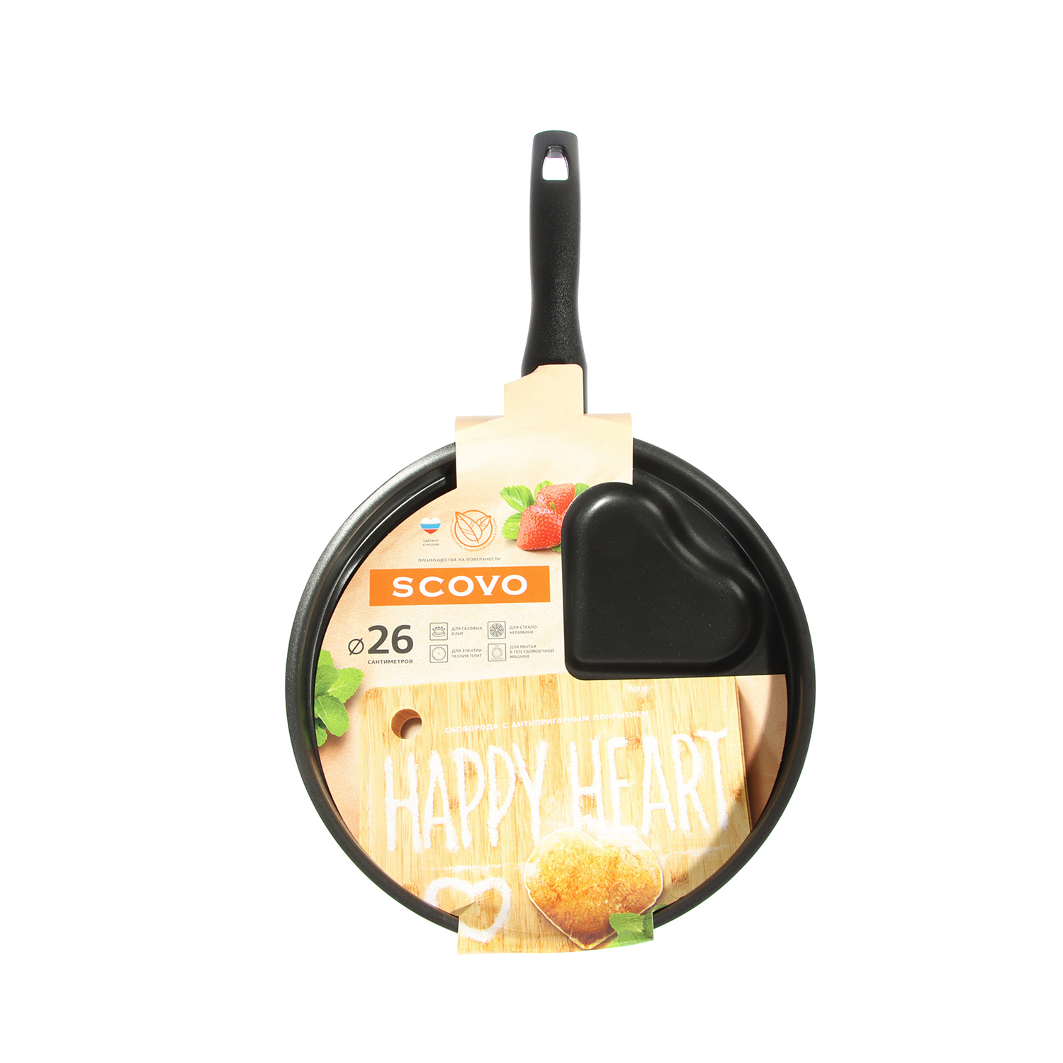 Сковорода алюм.а/приг. Scovo "Happy Heart" d26см съемная ручка RH-002 (з-д "Сково") *1/12