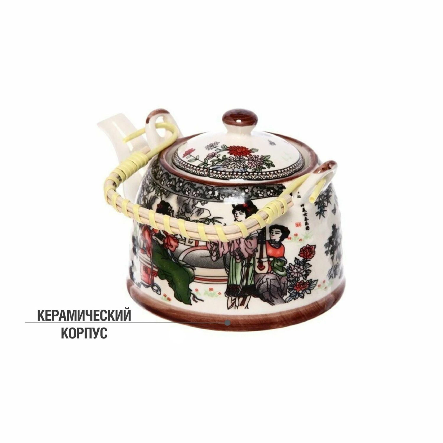 Чайник заварочный керамич. 700мл с тросник. ручкой, сито-вставка нерж. арт.TP-4 *1/12