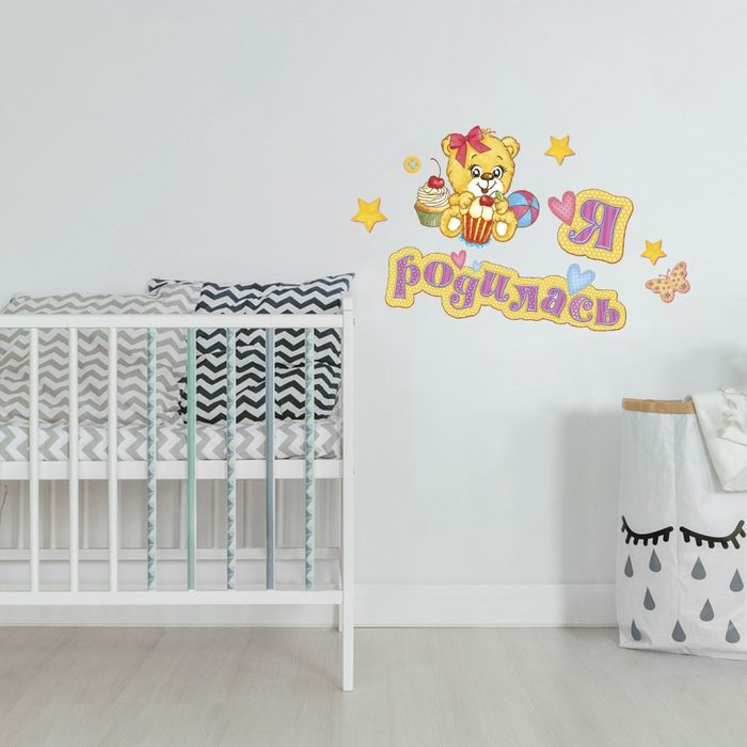 яяяНаклейка интерьерная "Я родился" для девочки 21 х 30 см 886203