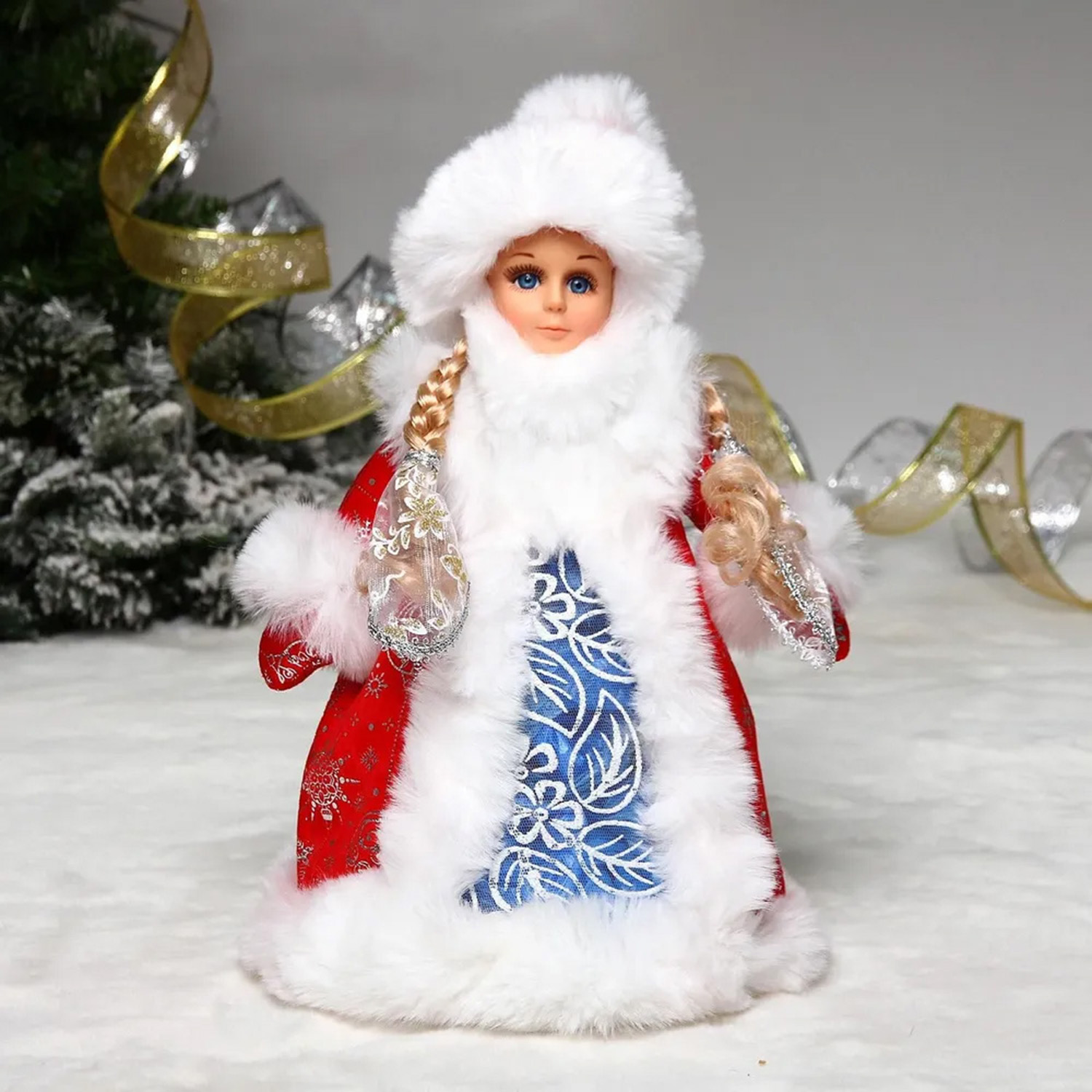 Снегурочка для подарков и конфет "Кому подарки?" 30 см (красная шубка)