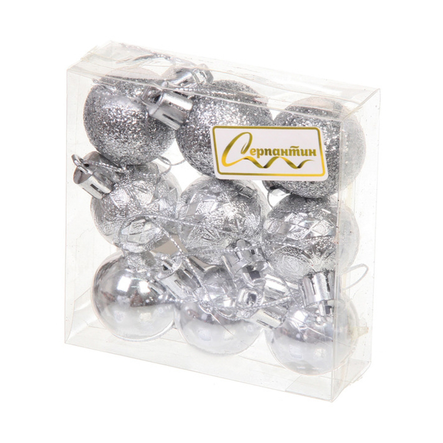Новогодние шары 3 см (набор 9 шт) «Микс фактур», серебро