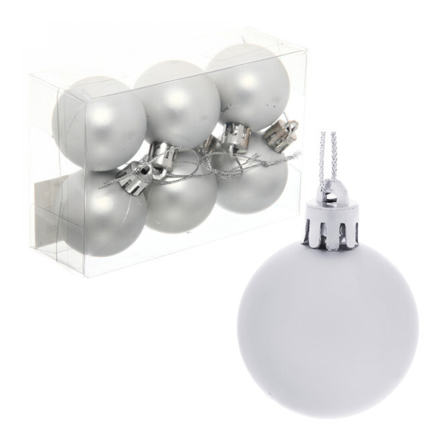 Новогодние шары 4 см (набор 6 шт) "Матовый", серебро