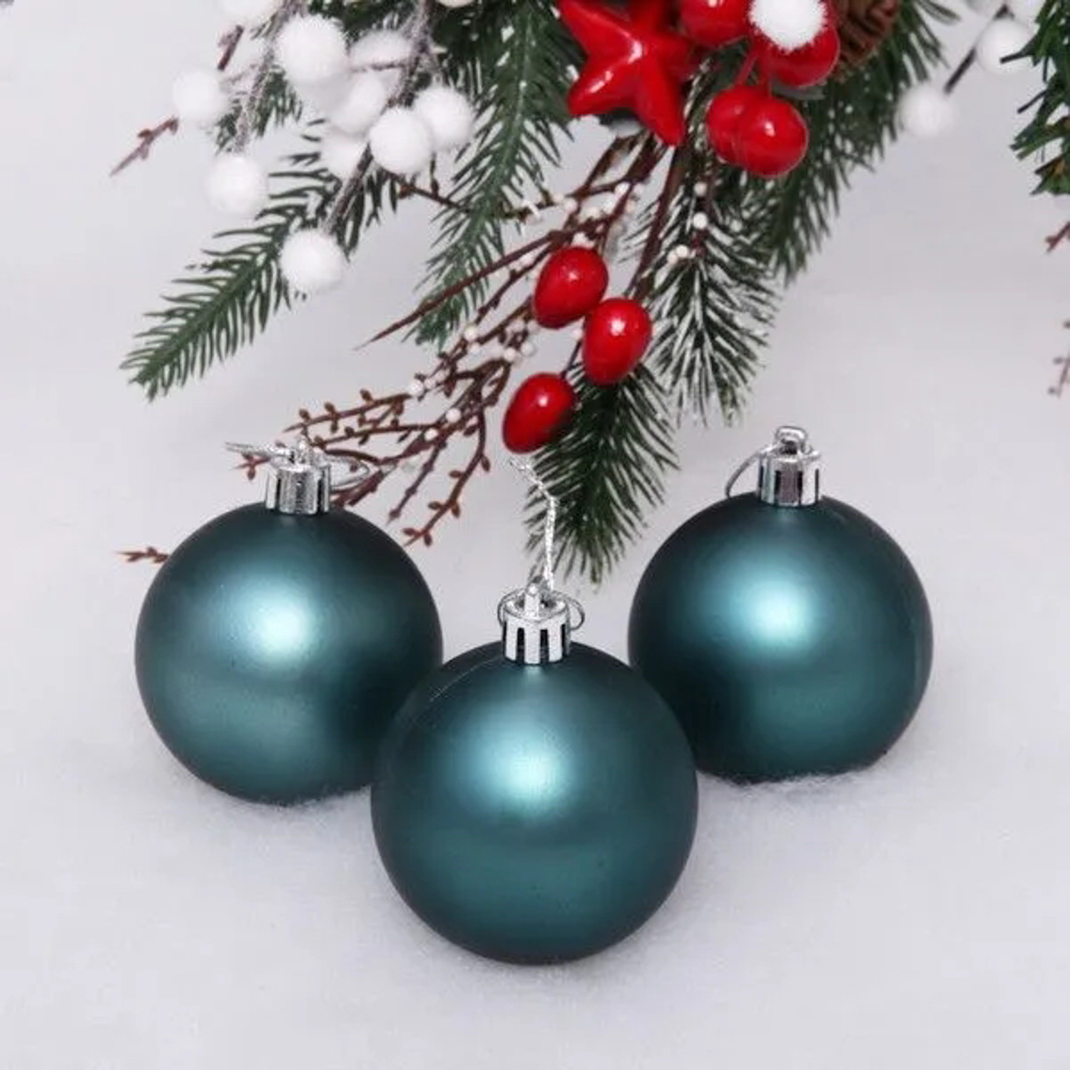 Новогодние шары 6 см (набор 3 шт) "Матовый", темный нефрит