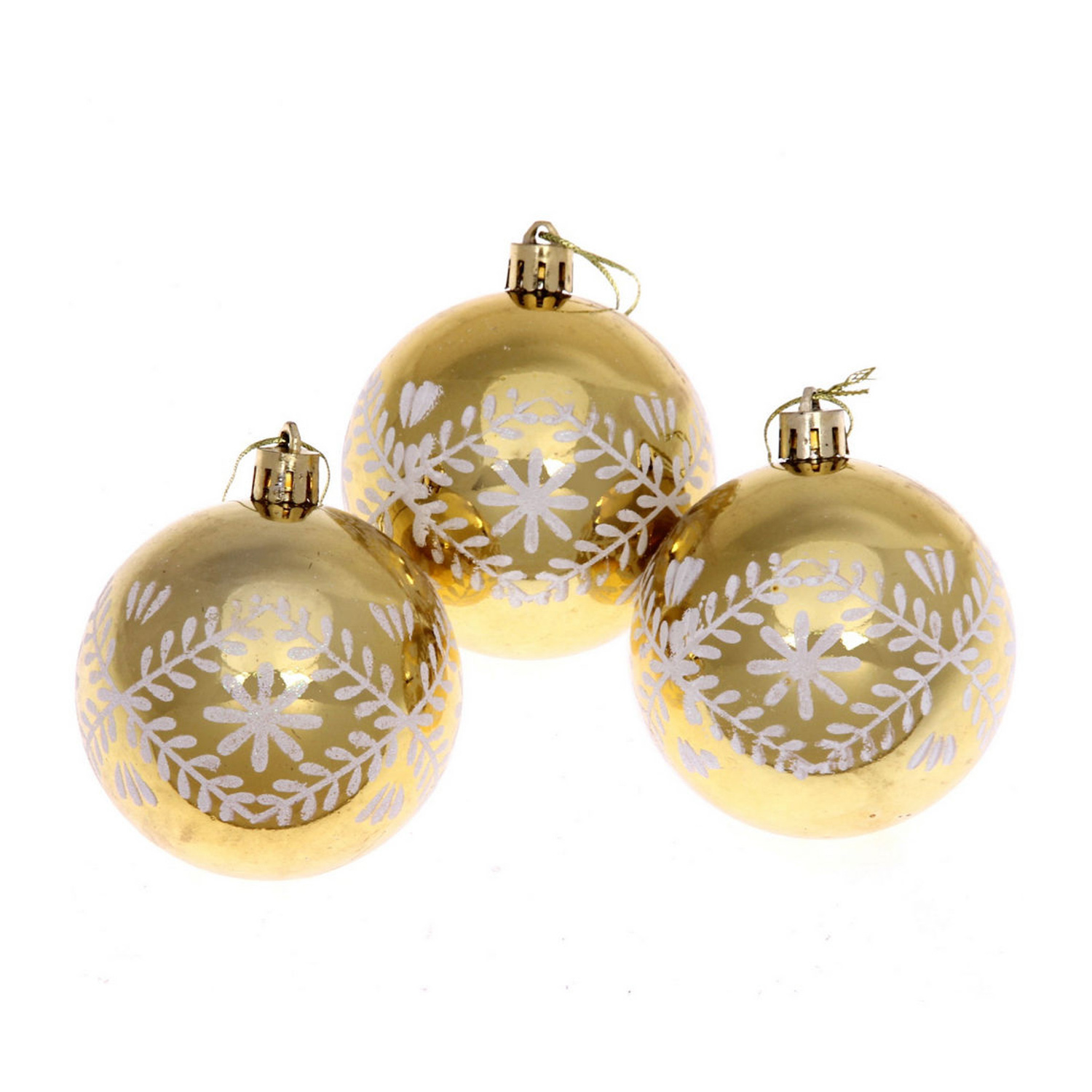 Новогодние шары 7см (набор 3шт) "Хвойные веточки", золото