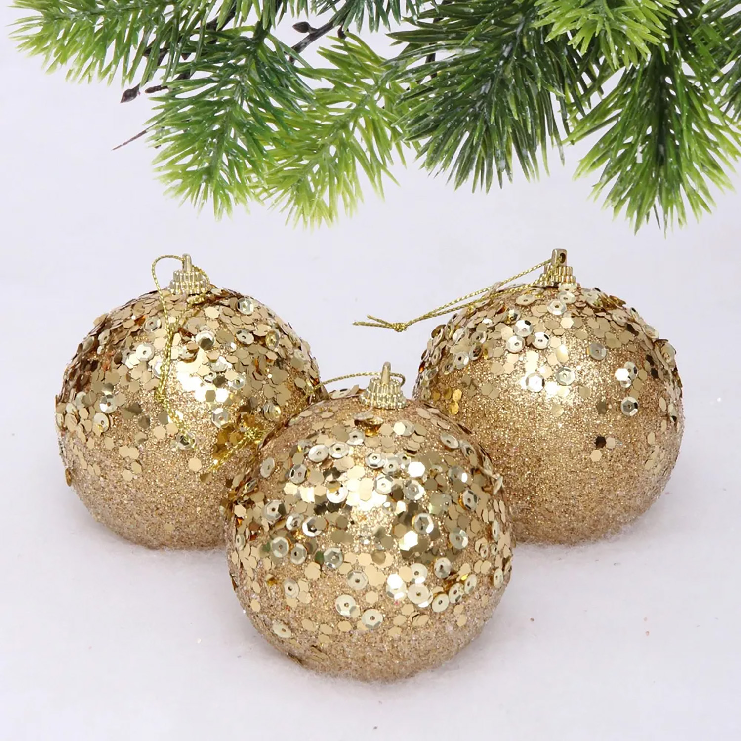 Новогодние шары "GLAME - Блеск" 8 см (набор 3 шт), Золото