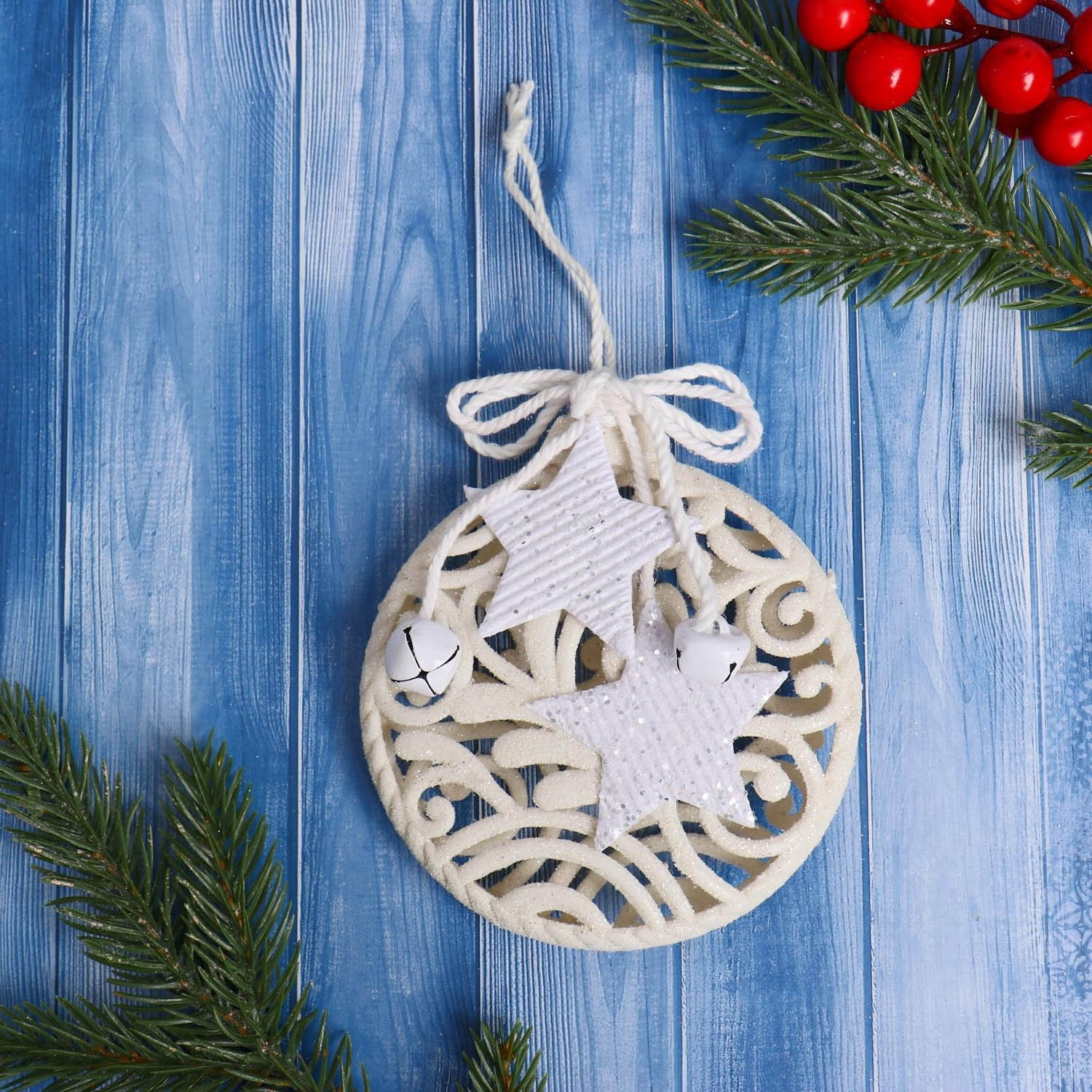 Украшение ёлочное "Звёздный шар" 10х10 см, белый 6947600