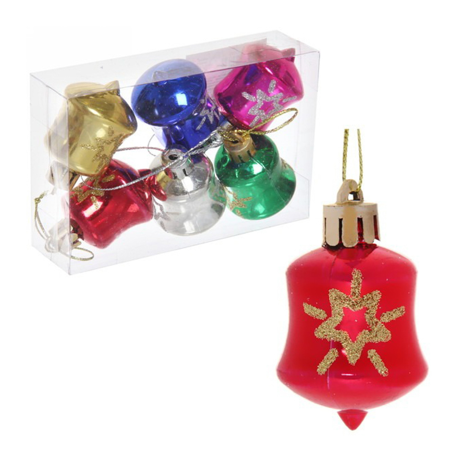 Ёлочные игрушки, набор 6шт, 4,5см "Колокольчик звезда" микс