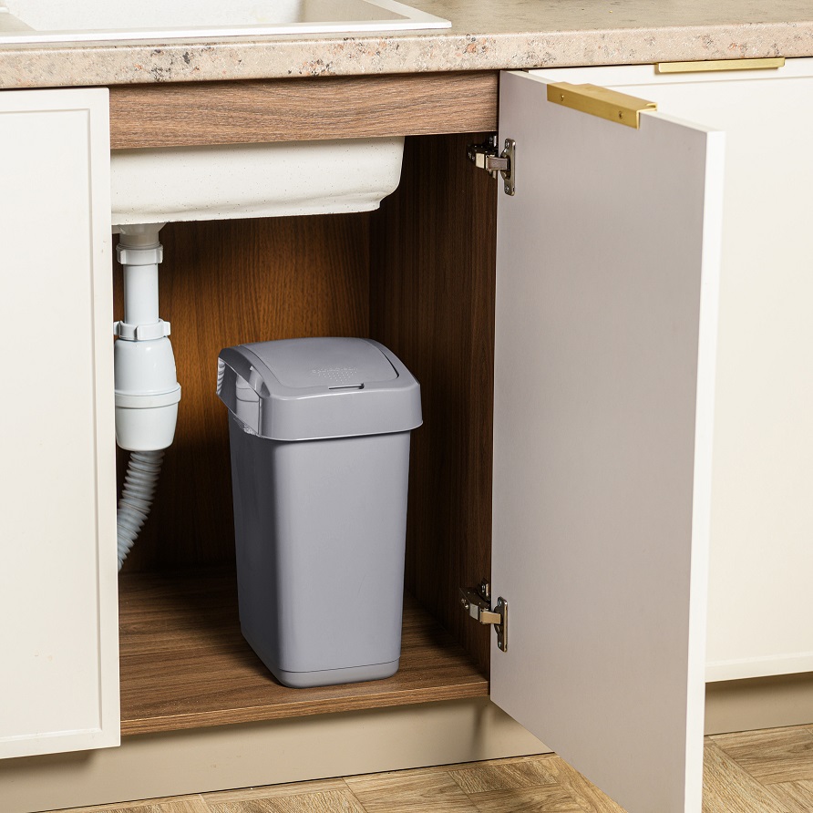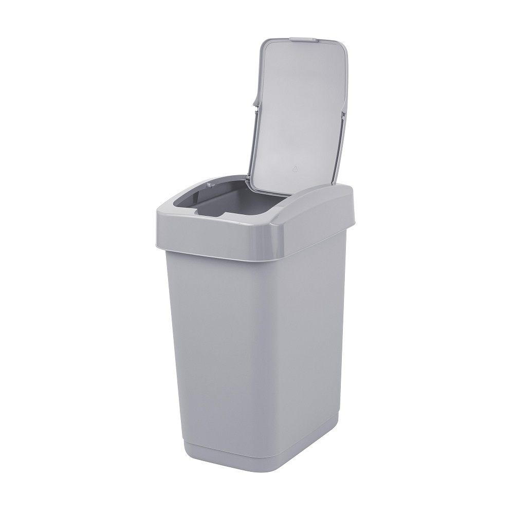 Контейнер д/мусора пластм. с откидной+"плавающей" крышкой 12л "Step" СерыйSC480611025 "Spin Clea"1/8