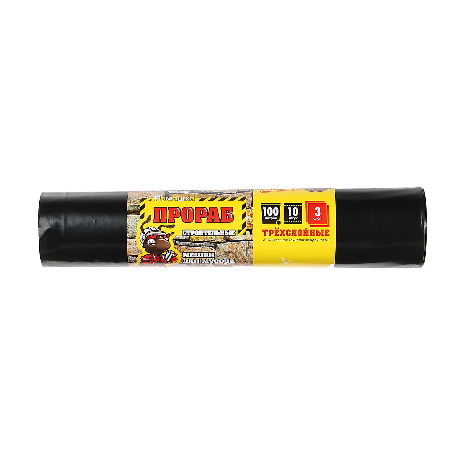 Мешки для мусора 100л*10шт толщ.70мкм Трехслойные "Прораб" ПВД ПБ100/10/10/3с "Ромашка"* 10